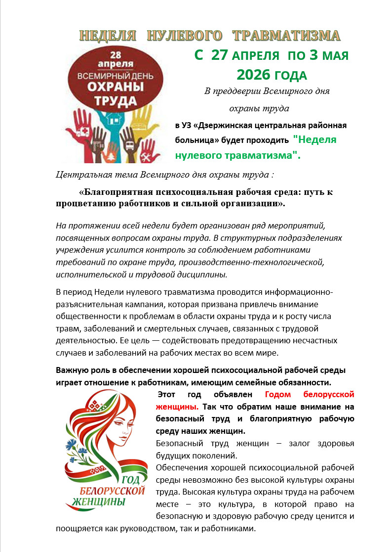 НЕДЕЛЯ НУЛЕВОГО ТРАВМАТИЗМА С 27 АПРЕЛЯ ПО 3 МАЯ 2026 ГОДА
